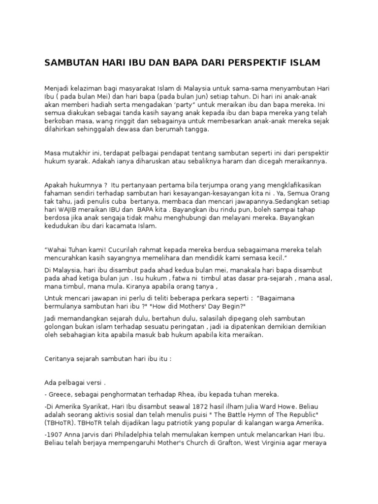 Scribd adalah situs bacaan dan penerbitan sosial terbesar di dunia. Yang taknak sambut hari ibu tindakan anda barangkali lebih selamat untuk pengamalan Islam dalam hidup anda. Jelaslah di sini bahawa ibu bapa perlu menunjukkan teladan.